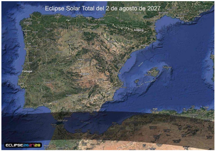 El eclipse de 2027 también será total y bañará de oscuridad los cielos del sur de España, el norte de África y Oriente Medio. El eclipse de 2027 será importante por su duración, con un máximo de 6 minutos y 23 segundos de totalidad observable en Egipto. En el sur de España, la totalidad alcanzará más de 4 minutos y medio en localidades como Tarifa, Ceuta y Melilla.