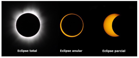 Existen cuatro tipos de eclipses solares: total, anular, parcial e híbrido.